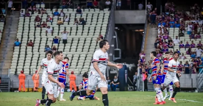 O São Paulo ficou com um jogador a menos, mas mesmo assim venceu o Fortaleza por 2 a 0 nesta…