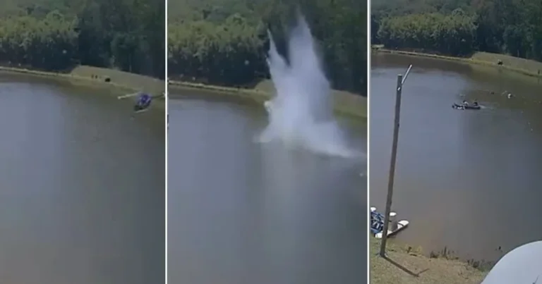Helicóptero cai em lago de pesqueiro no interior de São Paulo; veja vídeo
