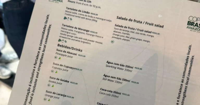 veja os preços da alimentação na COP 30, em Belém