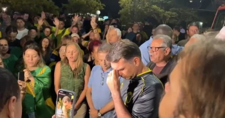 Hinos, bandeiras do Brasil e choro de Flávio Bolsonaro; vídeo mostra vigília após prisão