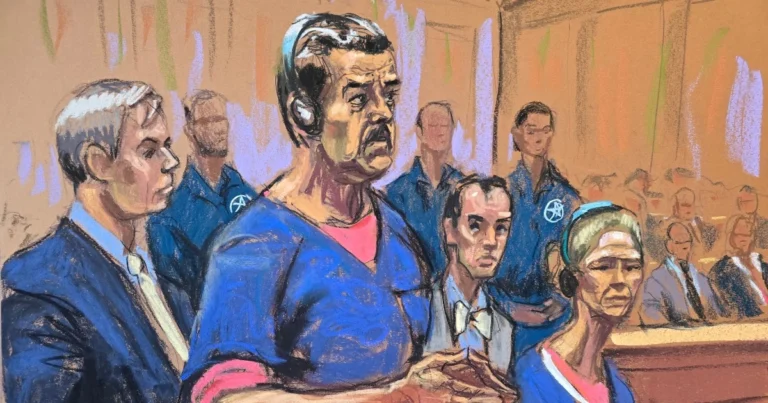 Desenho mostra Nicolás Maduro em audiência nos Estados Unidos