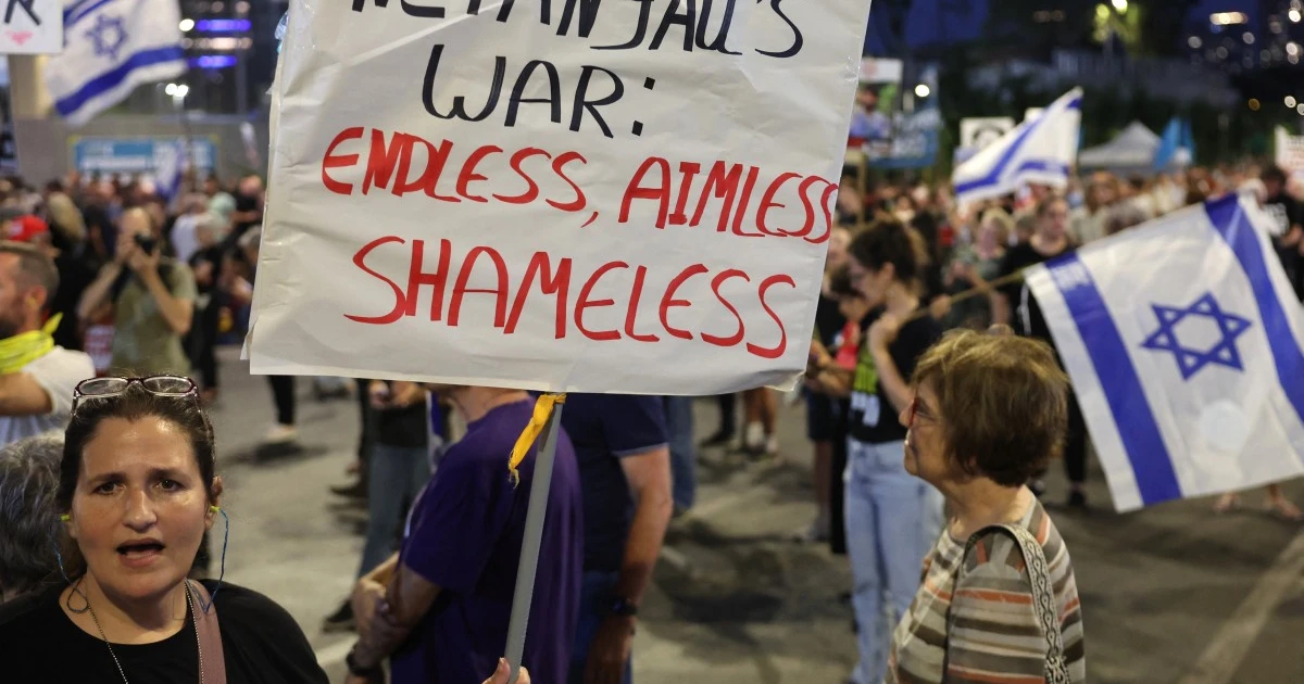 enquanto israelenses protestavam em frente ao gabinete.