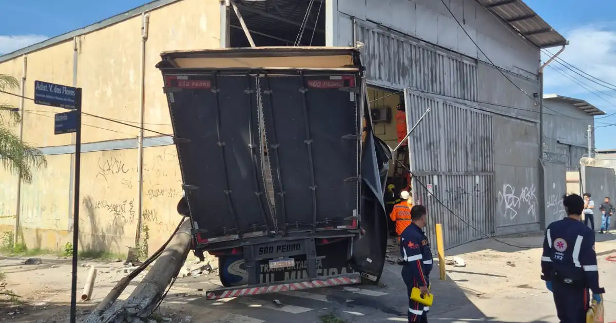 Carreta arrasta postes, invade empresa e deixa feridos em Contagem