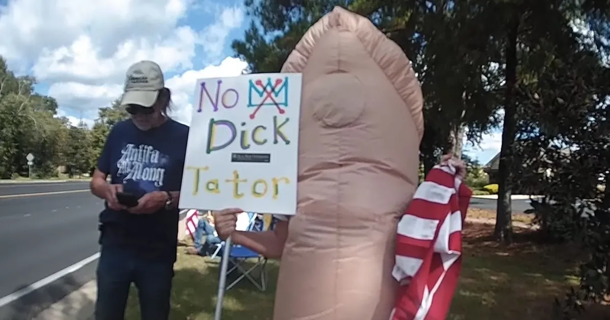 Vídeo: idosa vestida de pênis é presa em protesto contra Trump nos EUA