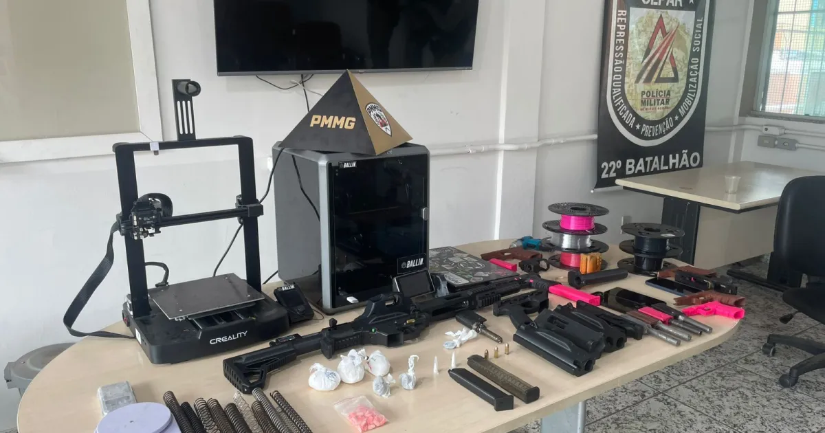 A Polícia Militar descobriu uma fábrica de armas falsificadas, feitas em impressora 3D, no Barro Preto, região Centro-Sul de Belo Horizonte, enquanto procurava por um suspeito de lesão corporal.