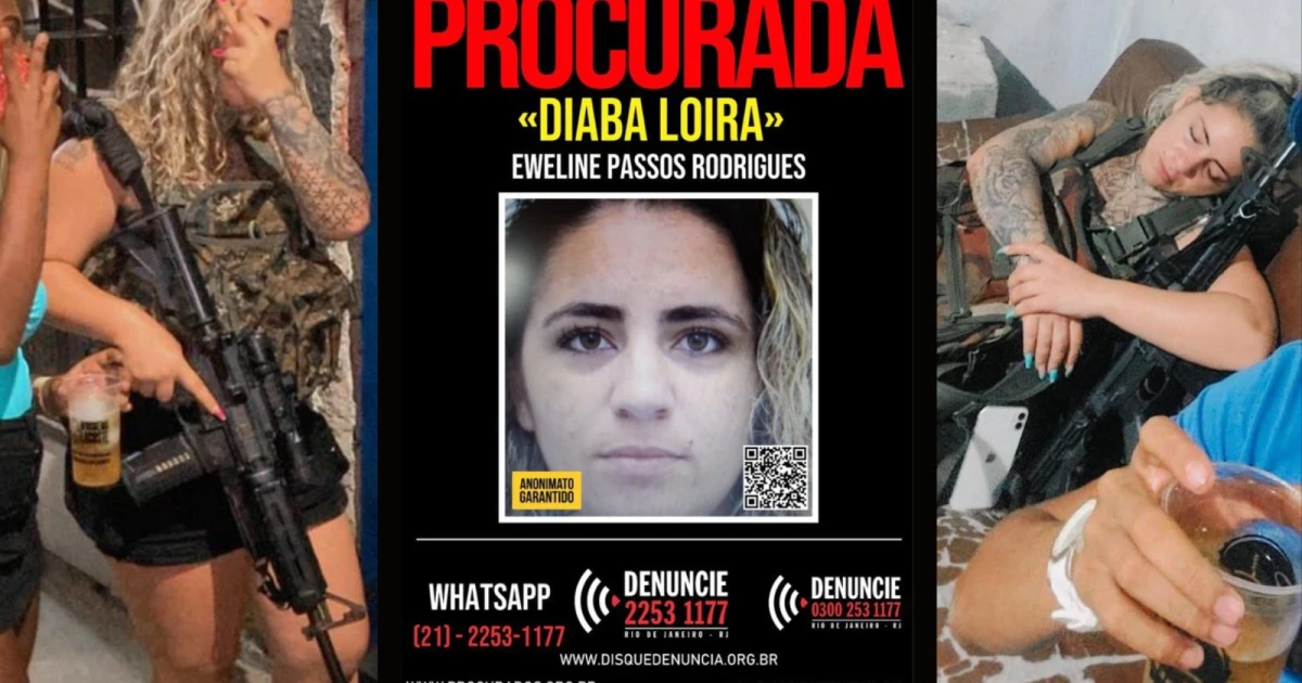 Eweline Passos Rodrigues, de 28 anos, a “Diaba Loira”, foi encontrada morta na noite dessa quinta-feira (14) em Cascadura, na Zona Norte do Rio de Janeiro. O corpo estava enrolado em um lençol, com perfurações de balas na cabeça e no tórax. Ela era procurada pelo Setor de Inteligência da Polícia Militar de Santa Catarina e por forças de segurança do Rio e chegou a dizer que não se entregaria viva: “só saio no caixão”.